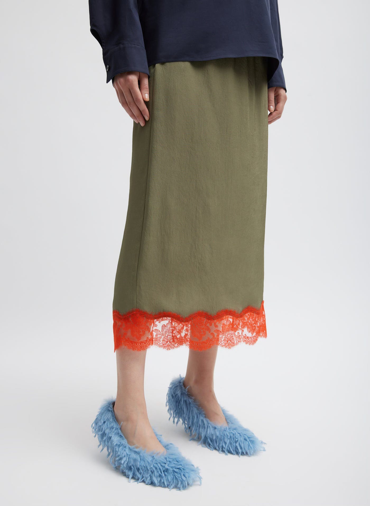 I know I’m sitting comfortably in that zone when I succumb to my infatuation for this look from Tibi. It’s wonky, and the colors are practically confronting each other in a way that doesn’t feel immediately comfortable. But the more I stare at those ridiculously shaggy periwinkle blue shoes and how they seem to be talking to the skirt’s clashing persimmon lace, the more my body pumps up its serotoni production. It’s right in all the wrong-seeming ways. And I want it.